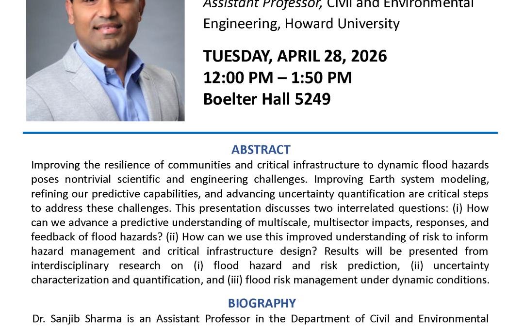 Speaker: Dr. Sanjib Sharma, Assistant Professor, Civil and Environmental Engineering, Howard University