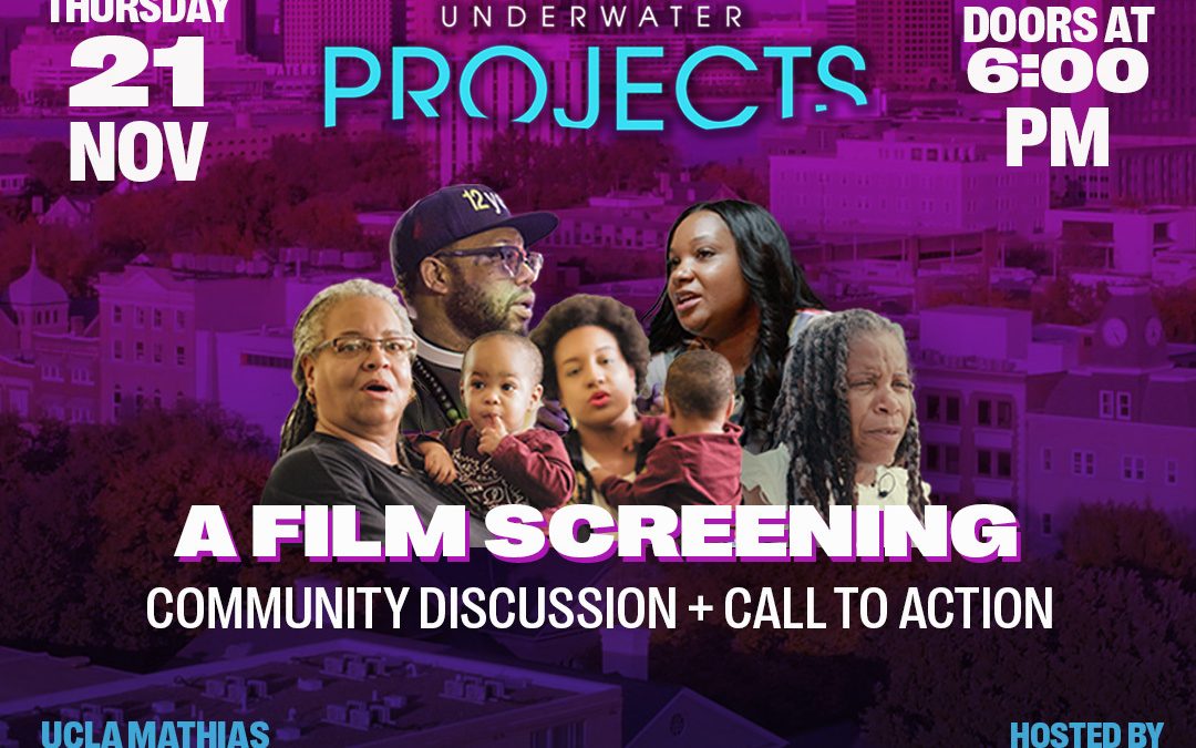 Join us this Thursday, November 21st for a special screening of Underwater Projects! The event is presented by the UCLA Center for Diverse Leadership in Science, the Climate Justice Collective, Hip Hop Caucus, and Dr. Regan Patterson of UCLA. The screening will be followed by a panel discussion on local organizing and environmental justice advocacy for just and sustainable futures. Food will be provided! You can learn more about the event and our star-studded panel here.